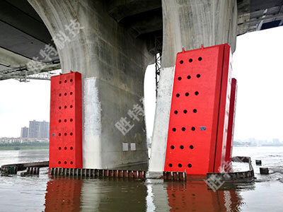 固定式鋼覆復合材料防撞設施結構橋墩或承臺的結構緊密貼合在橋墩、承臺表面,以柔克剛、剛柔并濟吸收動能保護橋梁、船舶及人員安全。